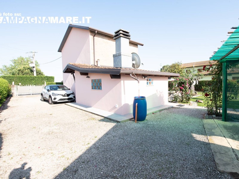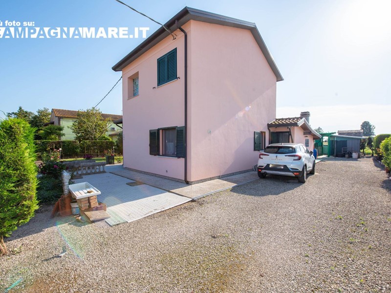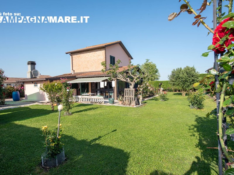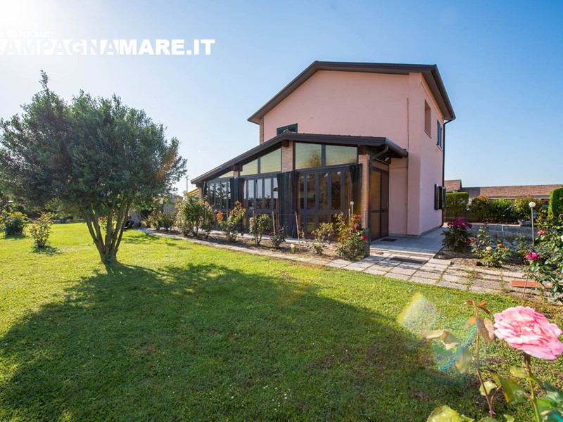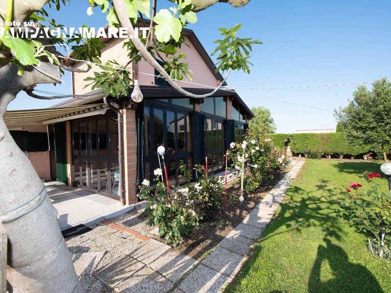 Casa indipendente a Jolanda di Savoia in vendita nella campagna circostante. Labitazione (130 Mq ca) è libera su 4 lati ed è in buono stato di manutenzione con un giardino esclusivo di 650 mq ca (tra coperto e scoperto). La casa in vendita a Jolanda di Savoia è disposta su due livelli ed è così composta: ampio portico verandato, taverna con camino, cucina, salotto e bagno al piano terra con scala interna per laccesso al piano superiore; 2 camere da letto al primo piano. Giardino circostante recintato e piantumato con garage (18 mq ca). Le caratteristiche della casa indipendente a Jolanda di Savoia sono: riscaldamento autonomo con termosifoni, infissi in legno con vetrocamera, ape F 294,34, arredamento compreso nel prezzo.