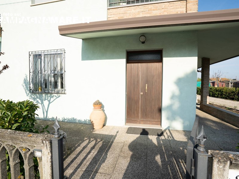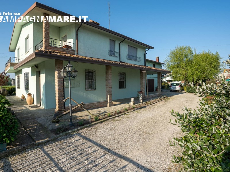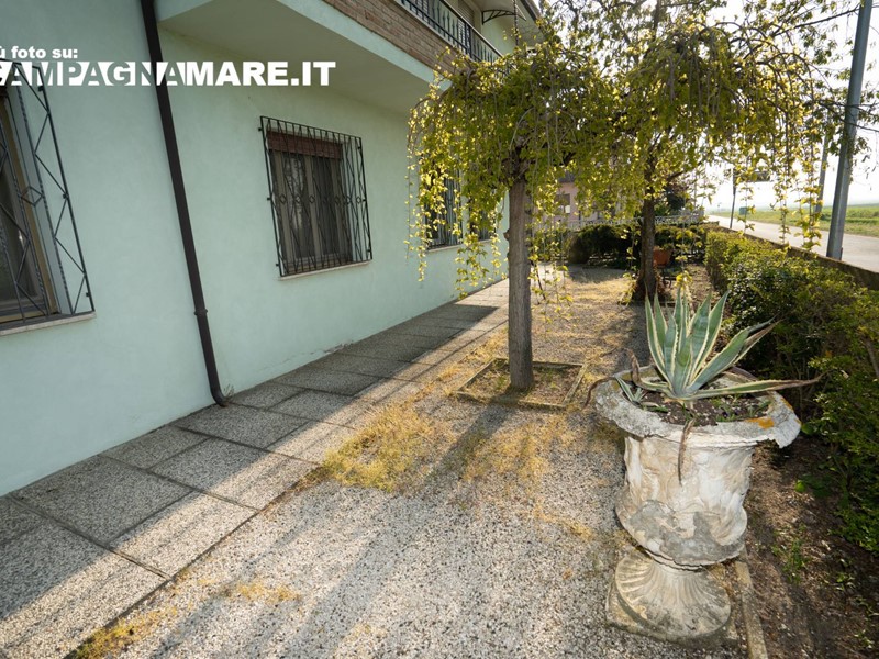 Villa bifamiliare a Codigoro in vendita in una frazione circostante. Labitazione (220 Mq ca) è libera su 4 lati con un giardino esclusivo di 200 mq ca (tra coperto e scoperto). La casa in vendita a Codigoro è disposta tutta al piano terra ed è così composta: ingresso, cucina, soggiorno, sala, 3 camere da letto, due bagni, lavanderia e garage (25 mq ca). Le caratteristiche della casa indipendente a Codigoro sono: riscaldamento autonomo con termosifoni, infissi in legno, ape G.