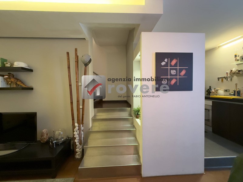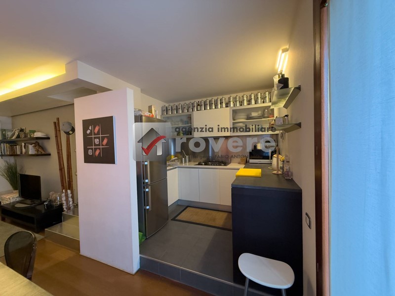 Appartamento arredato tipologia duplex (disposto su due livelli) piano primo + mansarda con travatuta in legno a vista. L'appartamento fa parte di un'elegante palazzina realizzata nel 2005 e si compone al primo livello di un soggiorno con angolo cottura che si affaccia su un terrazzo mentre in mansarda si trovano un ampio disimpegno dove è stato ricavato un locale lavanderia, la camera matrimoniale con un ampio terrazzo a tasca, la seconda camera con un caratteristico soppalco dotato sia di finestra che di velux ed un servizio. Al piano interrato si trovano un comodo garage di 21 mq. ed un magazzino di 7 mq. pavimentato con angolo lavanderia. Le altezze della mansarda sono piu' che generose ovvero 4 mt. nella parte piu' alta sino a degradare a 2,60 tmt. nella parte piu' bassa il tutto garantisce un'ottima abitabilita'.Le rifiniture sono accurate : i pavimenti sono in tavole di legno, i serramenti sono anch'essi in legno dotati di vetrocamera con sistema anta e ribalta ed oscuranti esterni. Il riscaldamento è di tipo utonomo con caldaia a gas metano e radiatori tubolari. E' presente l'impianto di climatizzazione (due split Panasonic). RIF. IMMOBILE N. 1815