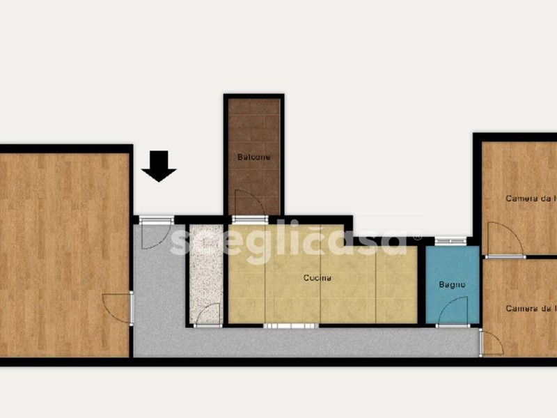 L'immobile si presenta in buono stato ed è composto da ingresso , salone doppio , ripostiglio , cucina abitabile con balcone , wc e due camere da letto.
