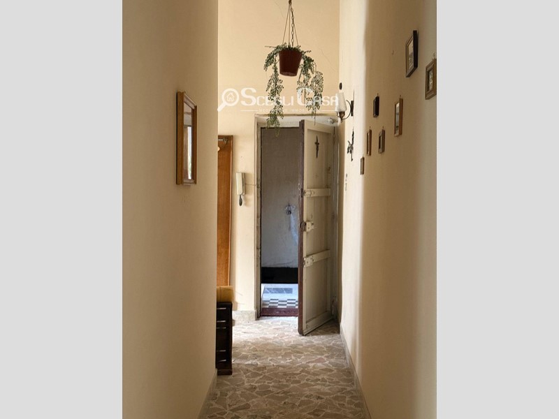 L'immobile internamente ha una quadratura di 120 mq, ed è composto da: si accede da una scala interna e si arriva al secondo piano con ingresso su corridoio, cucina semi-abitabile, soggiorno, ampio salone con balcone che affaccia proprio sul corso principale, un bagno; al terzo piano: ingresso su corridoio, una camere da letto matrimoniale, una cameretta, un bagno con doccia. Gli infissi sono in legno e vetro. L'appartamento si presenta da ristrutturare.