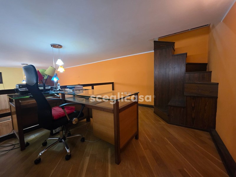 L'appartamento internamente ha una quadratura di 145mq, ben distribuiti, ed è composto da: al piano terra ingresso su soggiorno, una camera da letto matrimoniale, una cameretta, un bagno con doccia; da una scala interna si scende fino ad arrivare in una comoda cucina abitabile, in muratura, un bagno con vasca, ed infine, un soppalco che aggiunge una dimensione unica e funzionale allo spazio. Gli infissi sono in alluminio e vetro camera. Riscaldamento autonomo con termosifoni e in alcuni ambienti sono presenti i climatizzatori caldo/freddo.