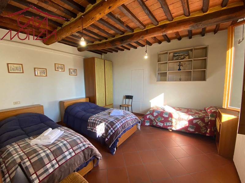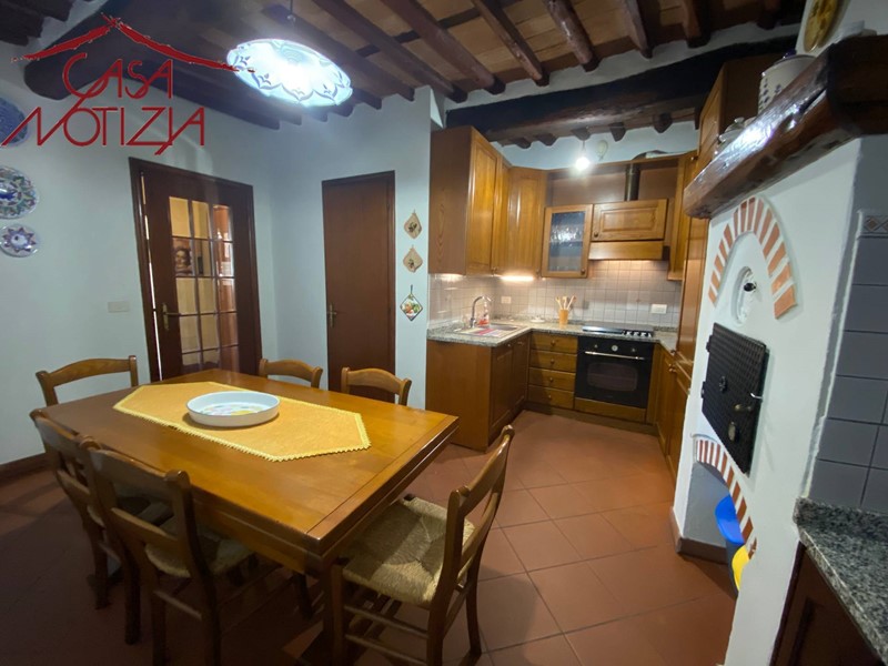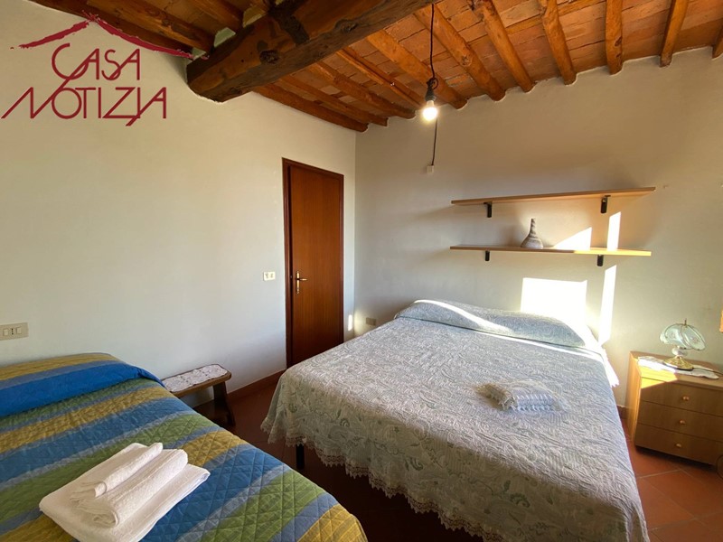 L'abitazione si compone da ingresso, accogliente e confortevole soggiorno, cucina abitabile con bel forno a legna e bagno/ripostiglio. Proseguendo dal disimpegno troviamo due camere matrimoniali, una camera doppia e ampio bagno con vasca.