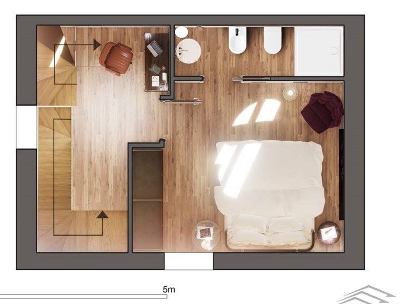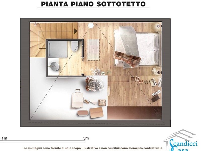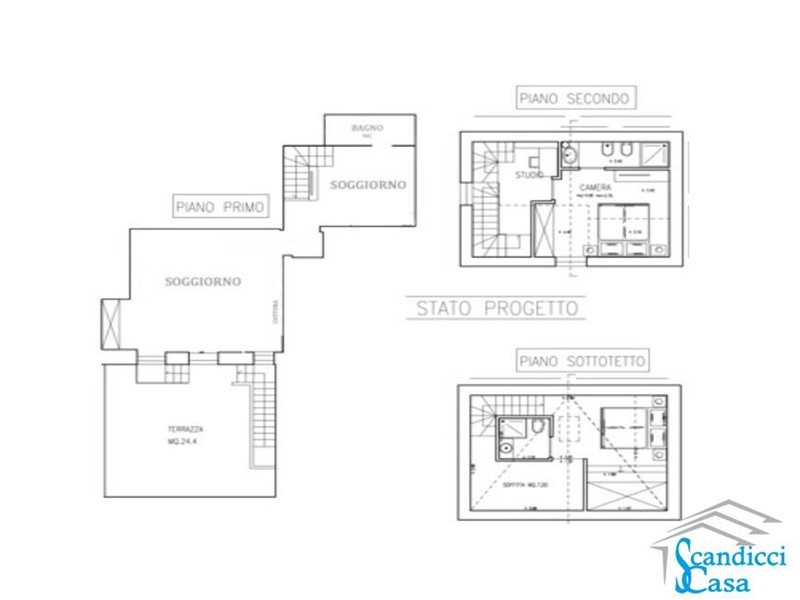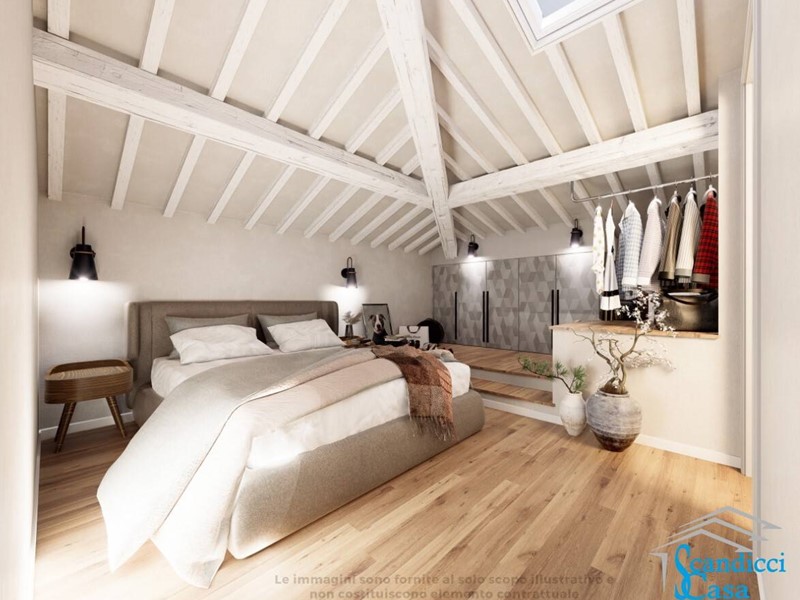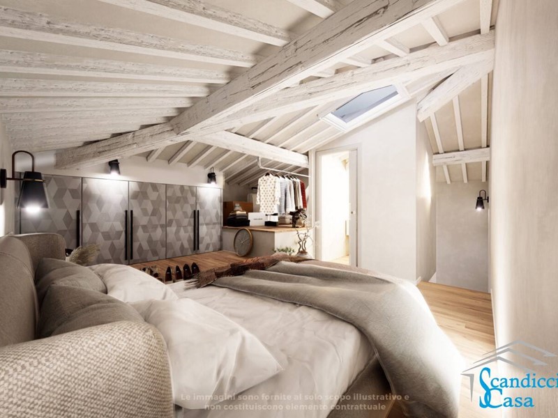 Con ingresso indipendente a piano terra, tramite scala interna si accede al primo piano dove troviamo una luminosa zona giorno con cucina a vista e una bella TERRAZZA ABITABILE di circa 25 mq, soggiorno e servizio. Al piano secondo si ha una camera da letto matrimoniale con servizio e salendo nel sottotetto si trova, nella zona più alta, una camera da letto matrimoniale e ulteriore servizio, mentre la parte più bassa è sfruttabile come soffitta .