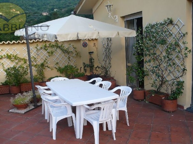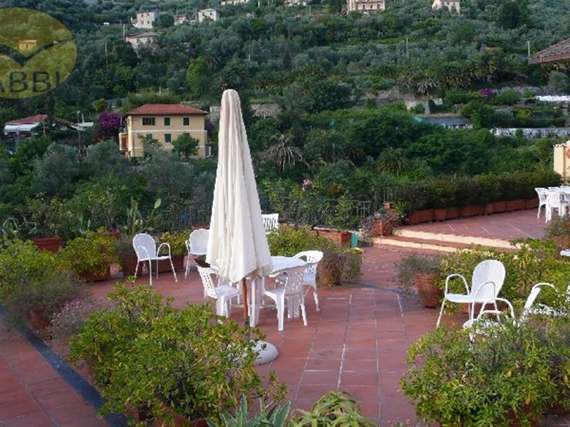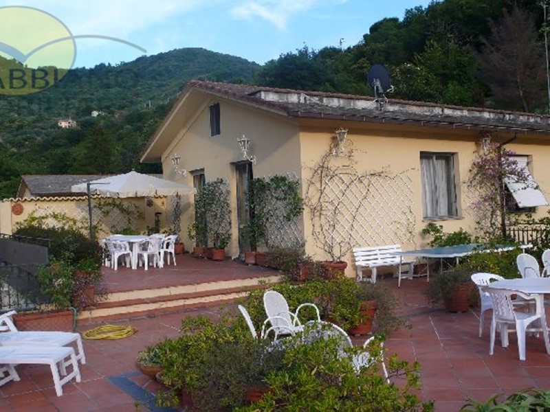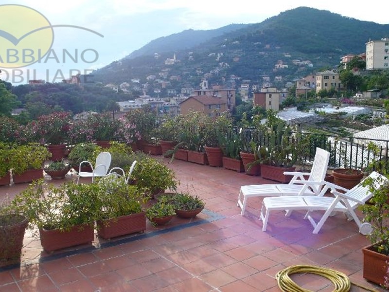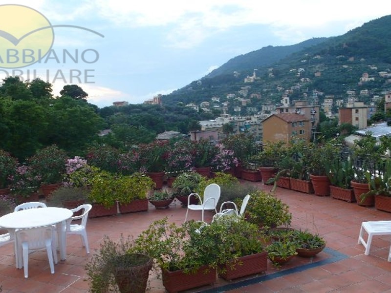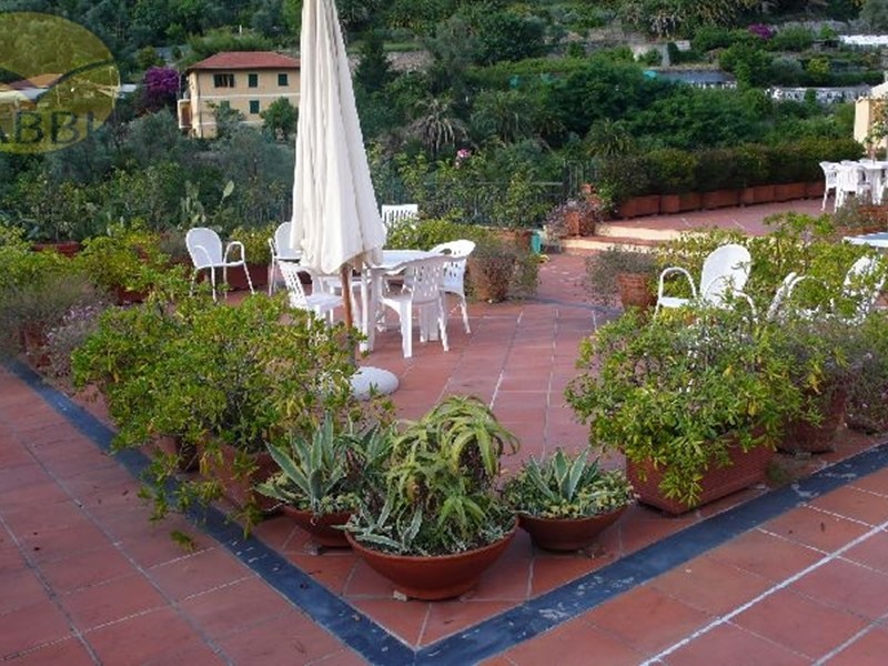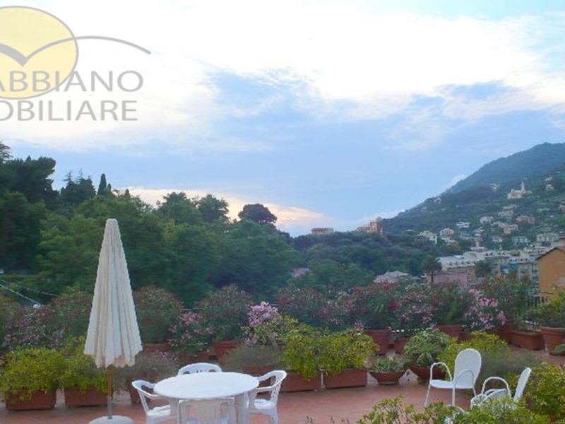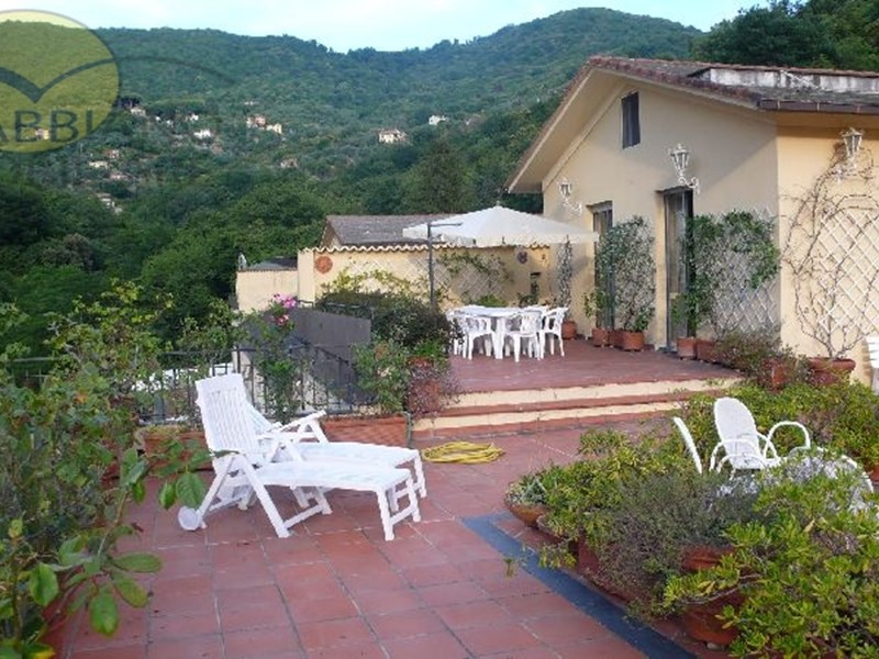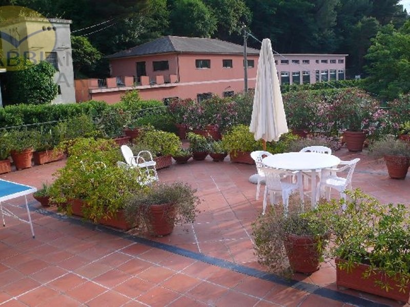 Recco , prima collina , nel verde di un contesto esclusivo con strada privata dalla via Aurelia, a 300 mt in linea d'aria dal mare e dal centro nel contesto di un vialetto privato dipartente dalla Via Aurelia VENDESI soleggiatissimo Attico, di 150 mq ca con 11 stanze, termoautonomo, divisibile in due unità abitative, con splendido terrazzo di mq 240 ca., tre posti auto e moto....