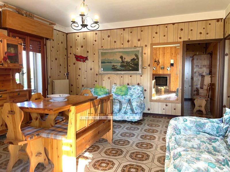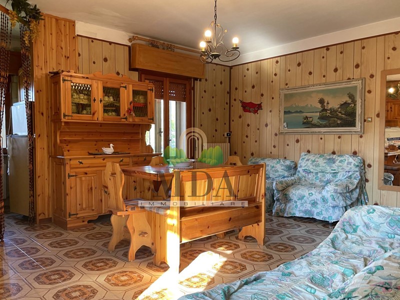 L'appartamento, 85 mq. circa è posto al secondo piano ed è composto da: ingresso, soggiorno con camino, cucinotto, disimpegno, camera matrimoniale, due camere singole, bagno con doccia e finestra.