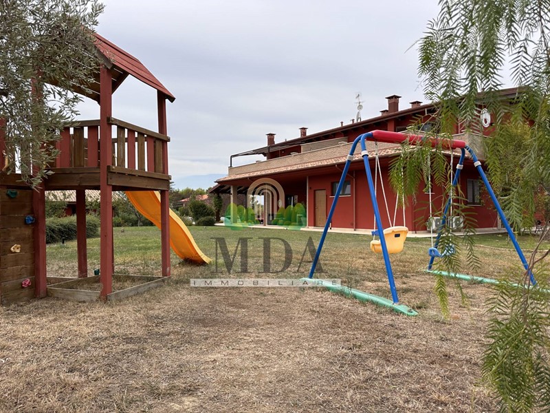 Lo spazio esterno, 10.000 mq. circa, è ben curato, piantumato con alberi ornamentali e da frutto, arricchito da giochi per bambini e barbecue.