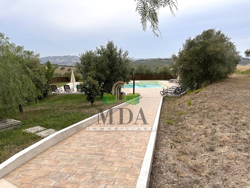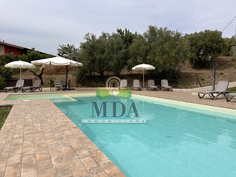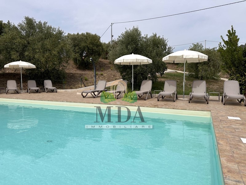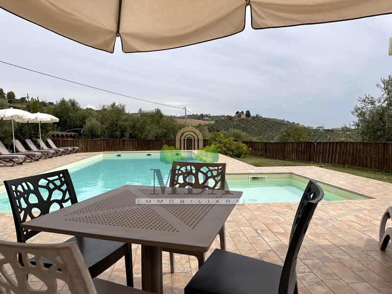 Complesso immobiliare con casa di campagna, ampio giardino, piscina, ampio terreno e vista panoramica, in vendita a Colonnella.