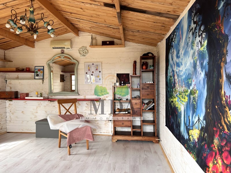 Il corpo principale, 570 mq. circa, si sviluppa su due livelli, dispone di doppio ingresso e presenta l'impianto di riscaldamento a pavimento in tutta la struttura.