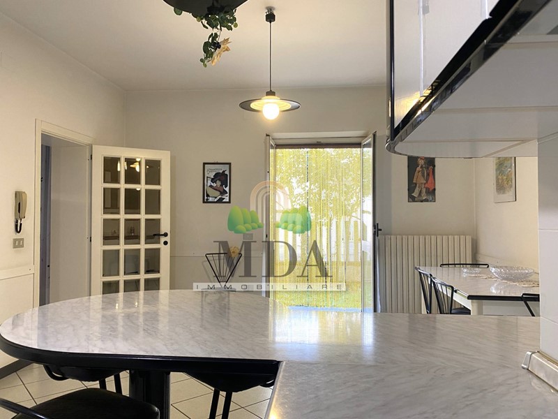 Completano la proprietà: garage, 25 mq. circa, posto al piano terra, ed ampio ripostiglio, 25 mq. circa, posto al piano seminterrato, accessibile da una scala posta nel garage.