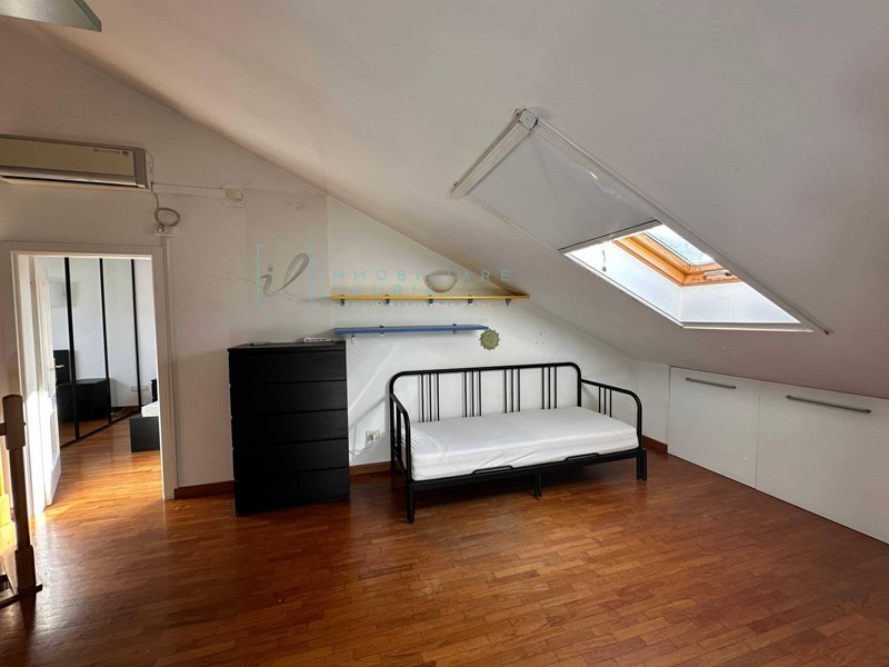 Al primo livello, accediamo a un ampio soggiorno di ingresso che conduce a una cucina abitabile. Troviamo quindi un disimpegno che porta a una camera da letto matrimoniale e a un primo bagno. Una comoda scala interna in legno ci conduce al piano mansardato, accessibile anche tramite un secondo ingresso indipendente. Qui, troviamo un locale di passaggio attrezzabile come armadi o salottino, una seconda camera matrimoniale e un ampio bagno. Gli spazi sono ben distribuiti, ideali per famiglie o per chi desidera uno spazio extra per ospiti o un ufficio.