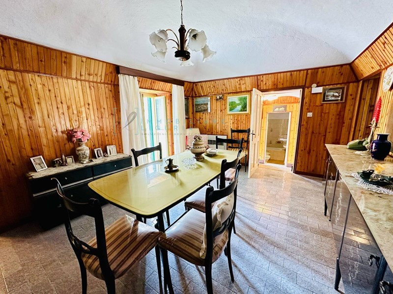 L'ingresso principale è dal piano terra ed è composto da un' accogliente cucina, riscaldata da tipica stufa in ghisa a legna, sala da pranzo e locale ripostiglio/lavanderia. Da qui si sale con scala interna al piano superiore dove troviamo una seconda sala, tre luminose camere da letto, il bagno e due balconi; da questo piano si ha infine l'accesso per il locale sottotetto.