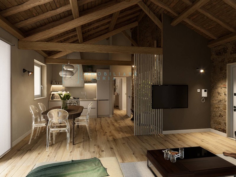 Elementi di richiamo alle case di un tempo, come pietra a vista e travi in legno, si fondono con tecnologie moderne di ultima generazione.