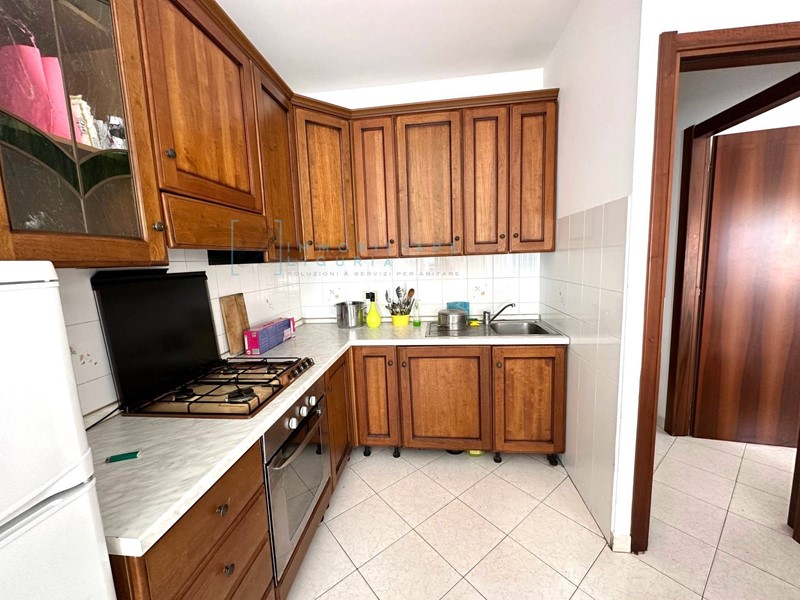 La cucina è dotata di tutti gli elettrodomestici necessari e dispone di una comoda zona pranzo. La zona notte, ben separata da un disimpegno, ospita due camere da letto, entrambe luminose, un bagno con doccia e finestra ed un balcone.
