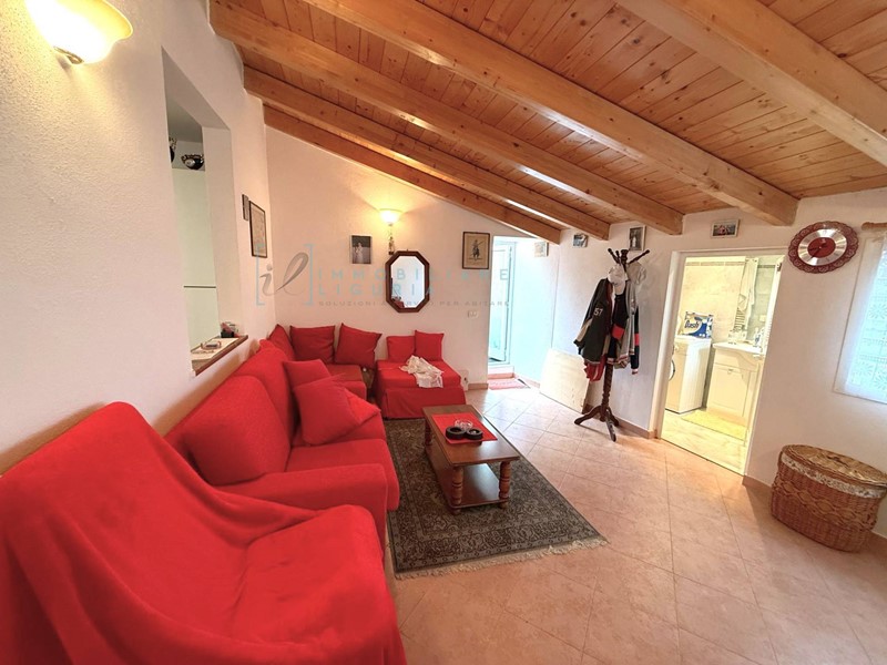 L'immobile in vendita a Rezzo è un appartamento di circa 100 metri quadrati, situato al secondo piano di una piccola palazzina rustica di sole due unità immobiliari