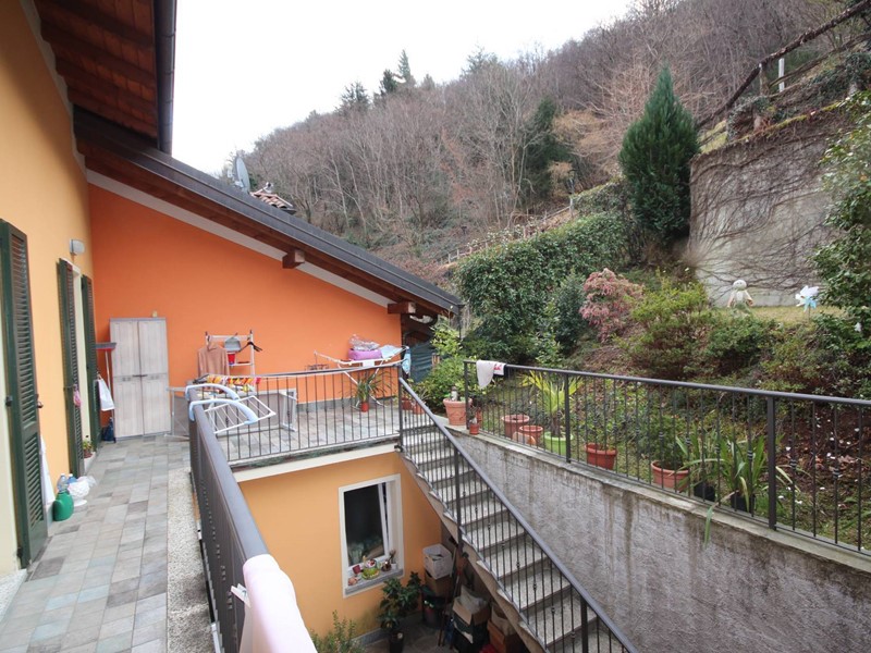 Al piano terra troviamo la zona giorno di circa mq 52 che dispone di un soggiorno spazioso e luminoso, con accesso all antistante porticato 16 mq e al giardinetto pianeggiante di circa mq 60. Anche dalla cucina si accede al porticato, il bagno dispone di doccia, il disimpegno si apre sulla corte, a lato della quale si trova il locale lavanderia. Le scale interne conducono alla zona notte che dispone di due camere da letto entrambe con balcone e vista lago, di un bagno padronale, di un altro balcone vista montagna, di una spaziosa terrazza posta sopra alla lavanderia e di un ulteriore giardino terrazzato di circa 50 mq.