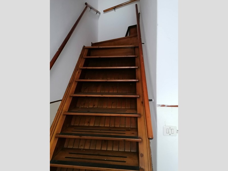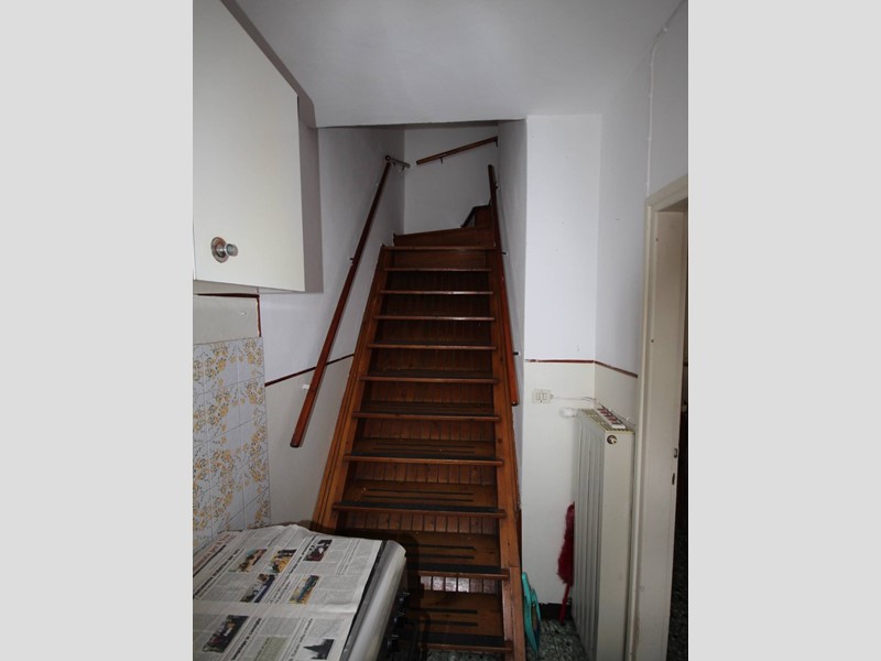 al piano terra si trova il soggiorno con camino, un angolo cottura, un ripostiglio ricavato nel vano sottoscale e la scala per accedere al piano superiore;