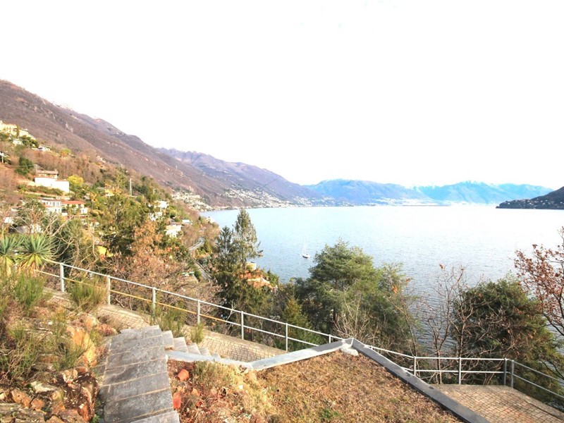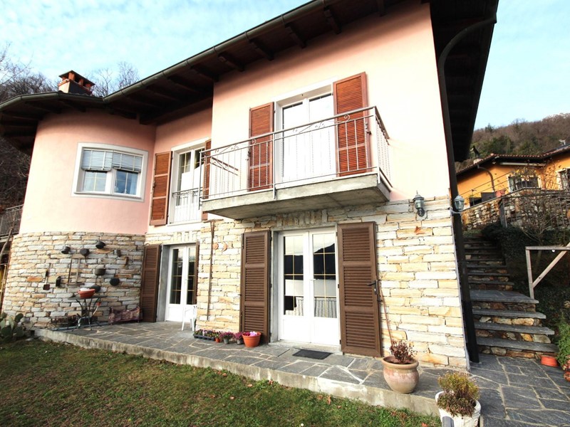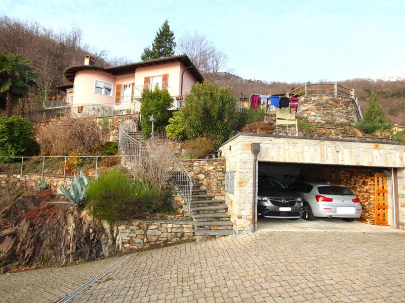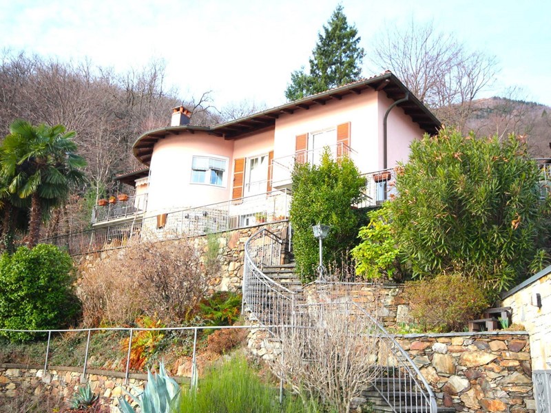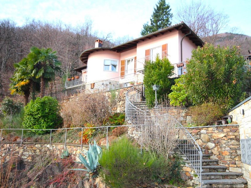 Sulle primissime alture di Cannobio, a soli due minuti dal centro, in posizione dominante e soleggiata, si trova questa villa con giardino, accesso alla spiaggia e stupenda vista lago.