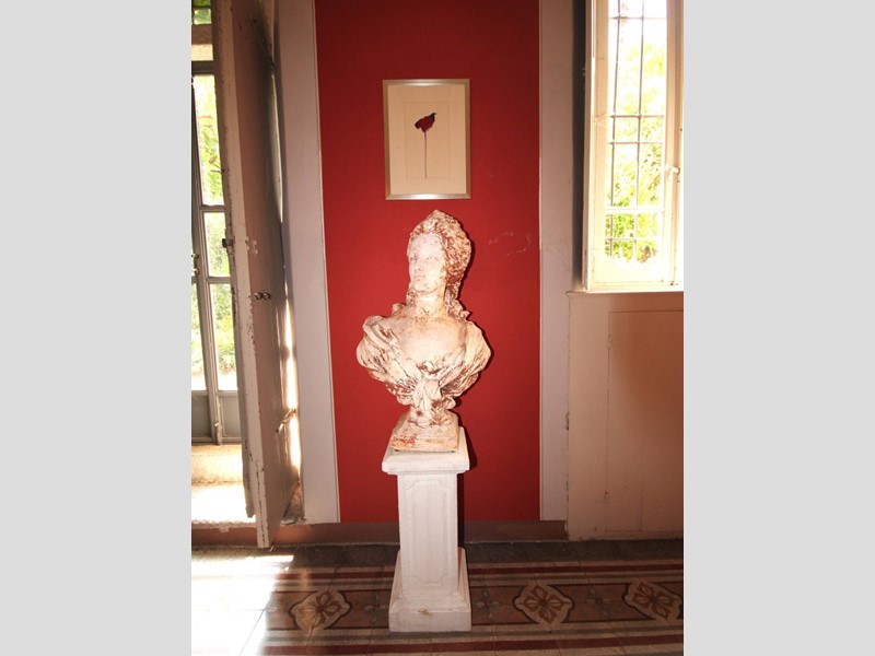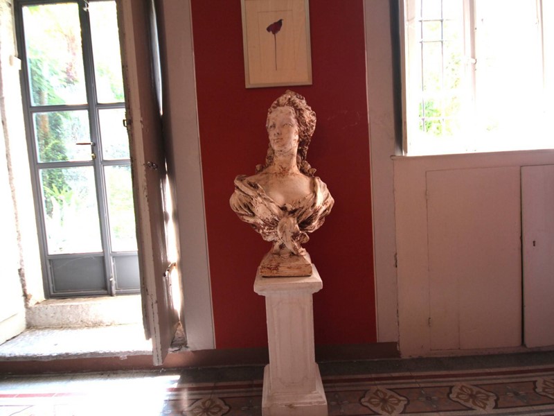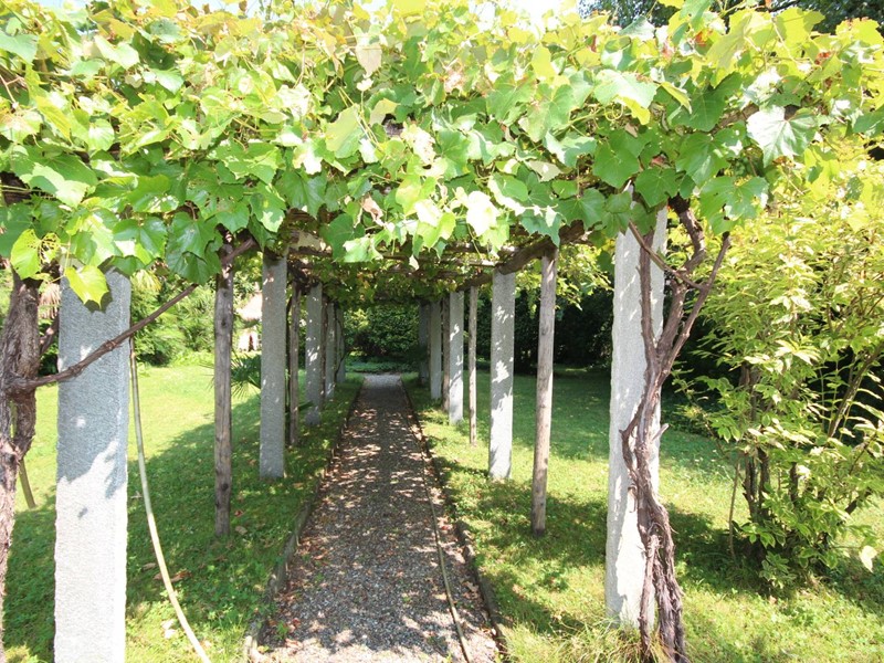 Dallesterno non ci si può immaginare la bellezza antica che appare non appena si varca il portoncino in legno: una corte di 80 mq. pavimentata in sasso con alcune statue, una casa con colori mediterranei e con un lungo balcone che corre sulle tre facciate ed infine 700 mq di giardino pianeggiante, racchiuso da un muro di cinta originale, con angoli fioriti, tavolini in sasso, aiuole, statue, vialetti e con un pergolato duva che conduce fino allabitazione.