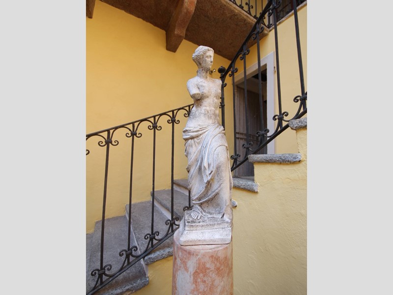 Lingresso è il primo passo per entrare in unatmosfera daltri tempi. Ci accoglie un atrio con pavimento in piode, un antico lavandino in sasso ed un ritratto in pietra del proprietario che nel 1700 costruì limmobile.