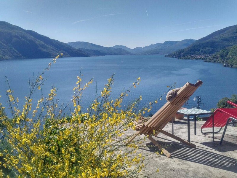 Labitazione, il giardino e la tranquillità del posizione dominante, formano una romantica oasi di pace con una fantastica vista a 180 gradi sul Lago Maggiore, a nord verso Ascona e le Alpi meridionali e a sud verso Cannobio e Luino.