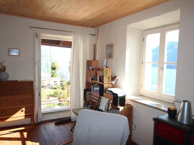 Al piano terra si trovano due camere da letto, una toilette ed un ripostiglio. Una originale scala in sasso conduce al piano superiore che ospita unampia cucina completamente attrezzata, la zona pranzo, un accogliente soggiorno con accesso al balcone da cui si gode di una splendida vista lago, ed infine un moderno bagno con doccia.
