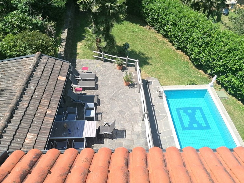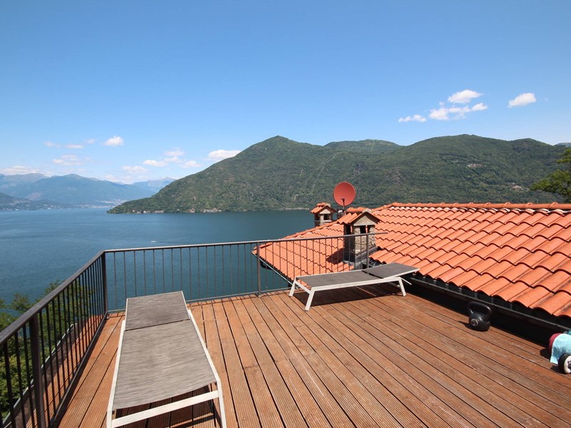 La villa è immersa nel verde. Piacevoli terrazzamenti sono arricchiti da fiori e piante tipiche del lago e dalla piscina anchessa con vista sul Lago Maggiore. Dal giardino, possiamo salire sul lastrico solare, adibita a meravigliosa terrazza, di circa mq. 20, posta sul tetto che offre una vista mozzafiato a 360°.