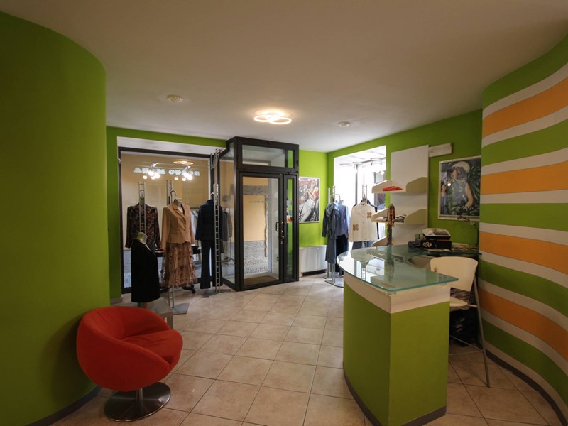 Il moderno e luminoso negozio, di circa 55 mq., ben organizzato per ottimizzare lo spazio disponibile, offre quattro ampie vetrine, tre delle quali sulla via pubblica ed una sotto al porticato laterale.