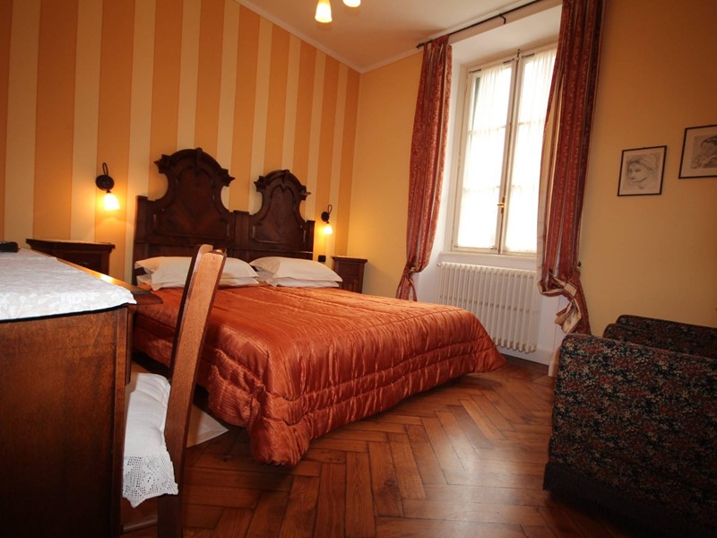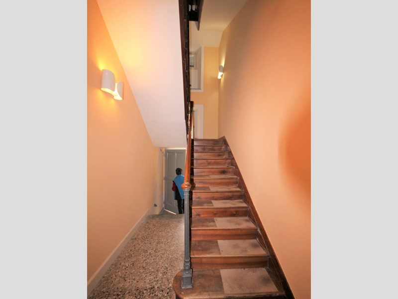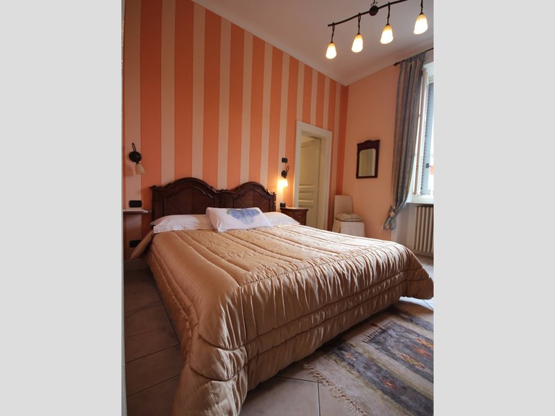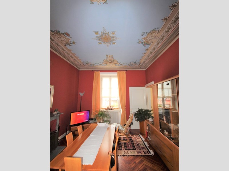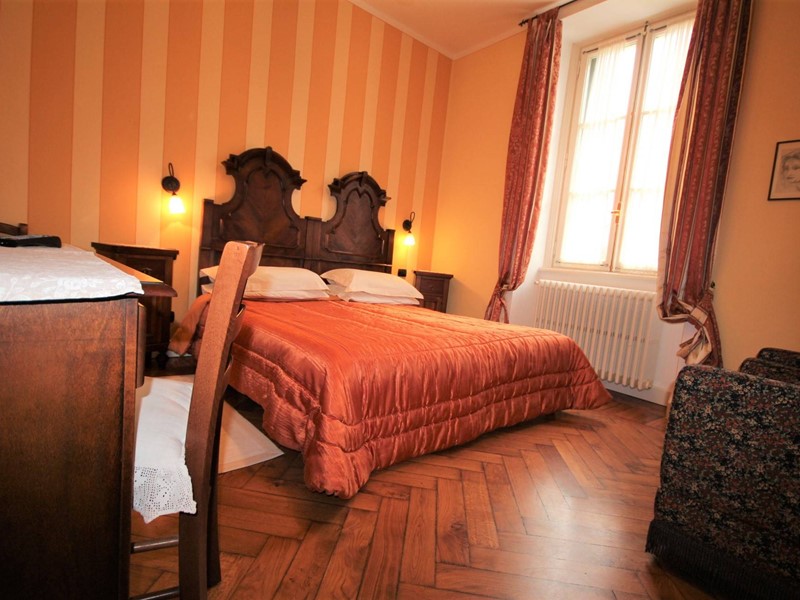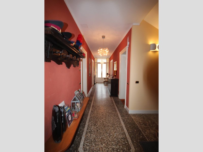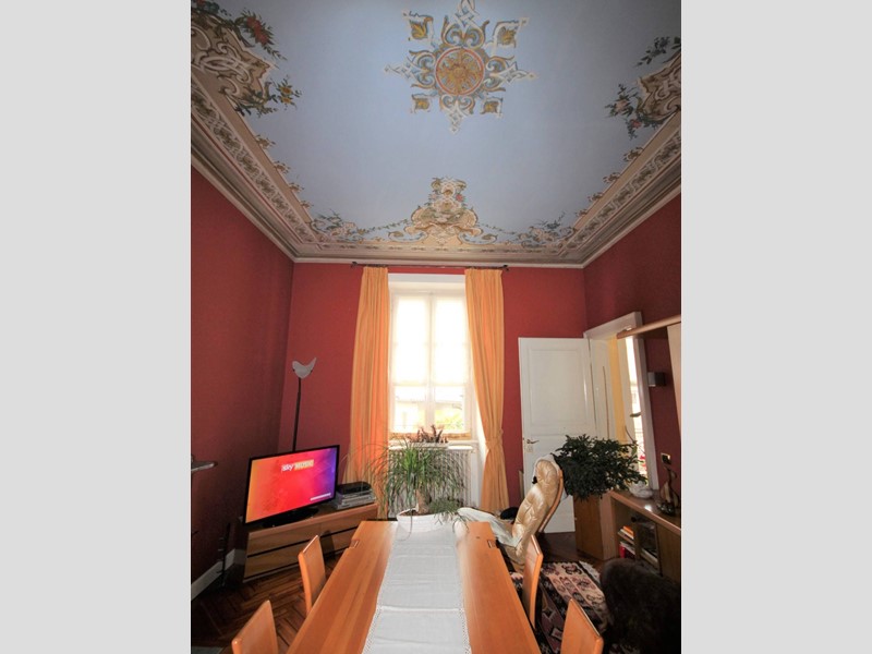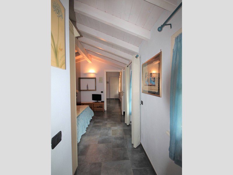 La scala originale dellepoca, con ringhiera in ferro battuto, porta allappartamento sito al primo piano così composto: ingresso con pavimento in cotto, una spaziosa cucina abitabile con camino e parquet, ampia sala con balcone, camino e soffitti affrescati, salottino con vista sul giardino e balconcino, camera da letto matrimoniale con camino e soffitti affrescati; camera singola. Al piano superiore ampio sottotetto di circa 90 mq con pavimento in cotto antico, due balconcini a pozzo e vista lago.