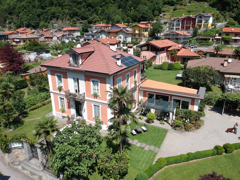 Nel cuore del centro storico di Traffiume a 1 Km da Cannobio, vicinissimo alle spiagge di sabbia del fiume ed alla verdeggiante pista ciclopedonale, splendida villa del 900, accuratamente ristrutturata con giardino pianeggiante e piantumato, sauna, taverna a volte, bella depéndance e comodi parcheggi.