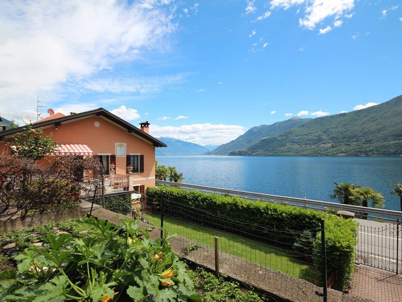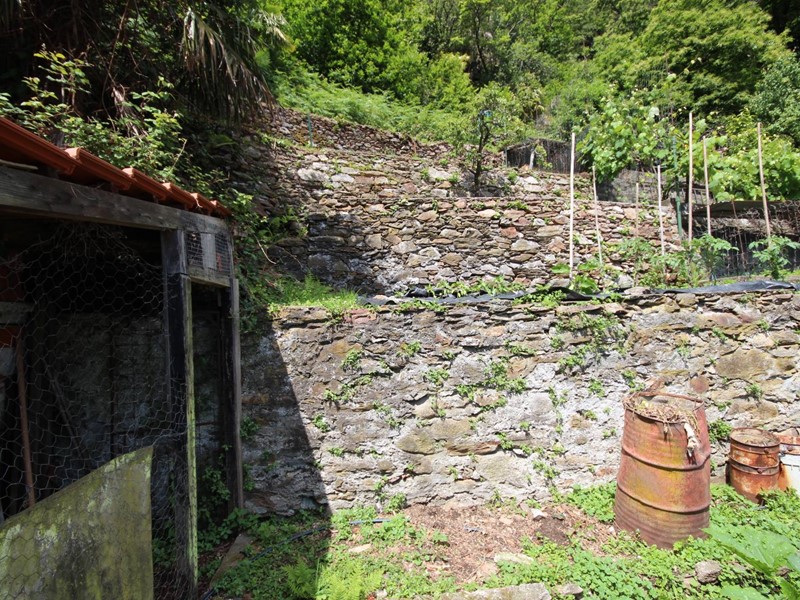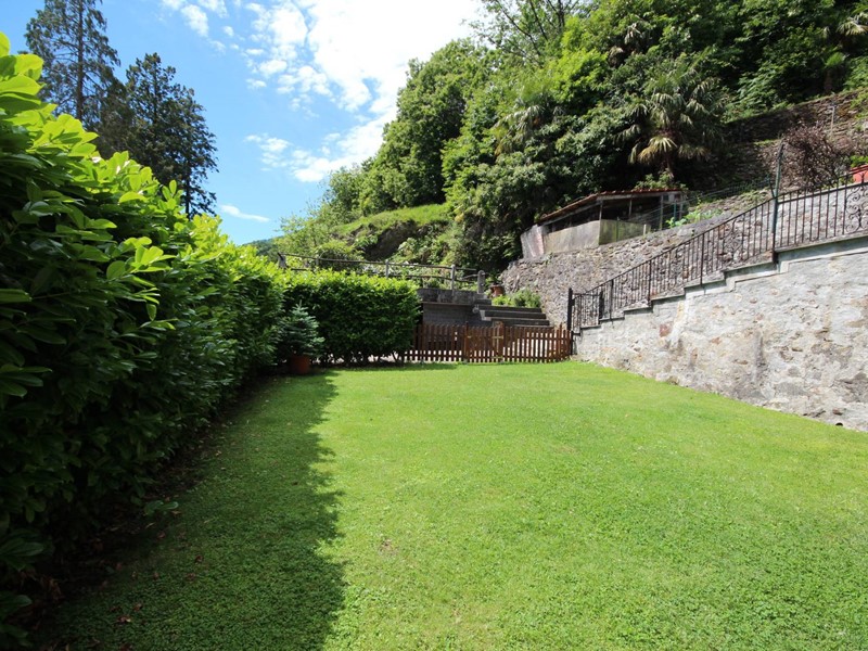 Molto graziosa è la pergola con il verde giardino pianeggiate. Una scala in sasso conduce al terreno terrazzato adibito ad orto e dalla quale si gode di una bellissima vista lago.