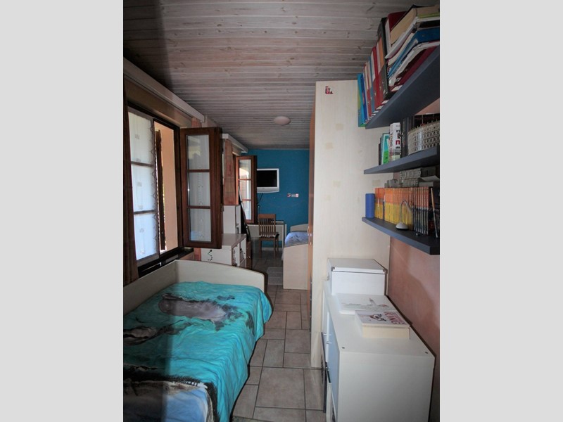 La camera da letto matrimoniale si affaccia sul porticato. Il bagno è molto spazioso e dispone di doccia e di vasca da bagno angolare. Lampia metratura permette di realizzare due bagni separati.