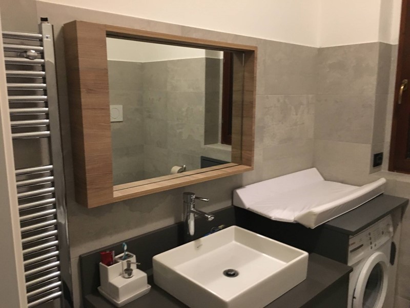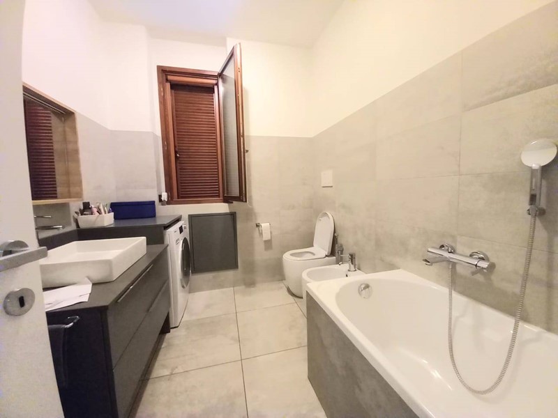 P.T. l' appartamento si apre direttamente sul soggiorno, disimpegno, cucina abitabile e bagno con vasca, scala lineare in marmo che sfocia al piano superiore dove nella zona notte, troviamo un elegante bagno di servizio di desiner con doccia, che con il suo effetto in gress dona un tocco di raffinatezza in più, camera singola in parquet ed infine camera padronale in parquet con accesso al TERRAZZO di 25mq.