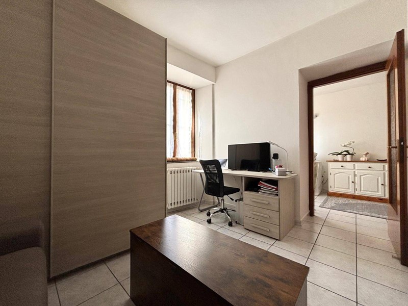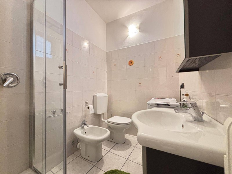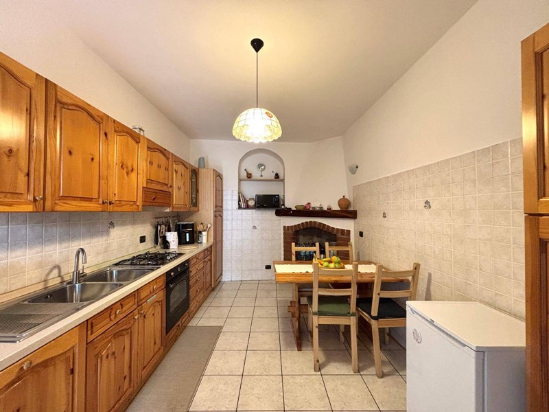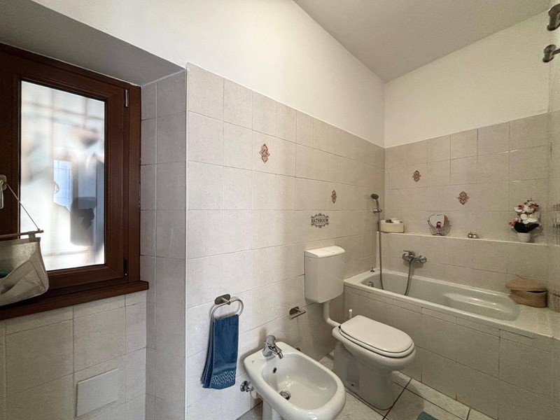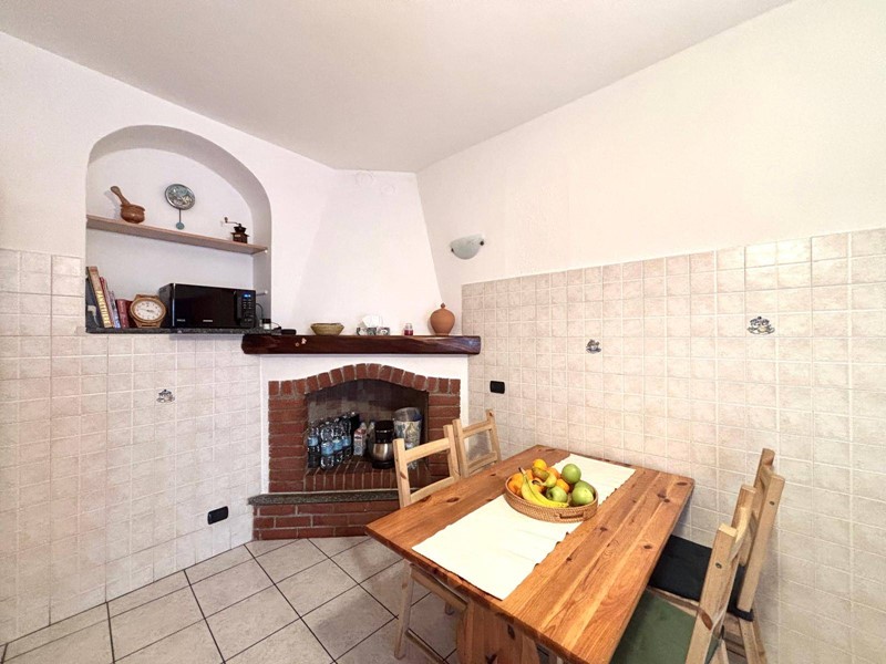 L appartamento accogliente e con spazi ben distribuiti si compone di un ampio ingresso, di una pratica cucina abitabile con camino a vista e con accesso diretto ad un pratico portico, di un bagno con doccia ed attacco per lavatrice, di una spaziosa camera matrimoniale e di un ulteriore camera con bagno en suit.