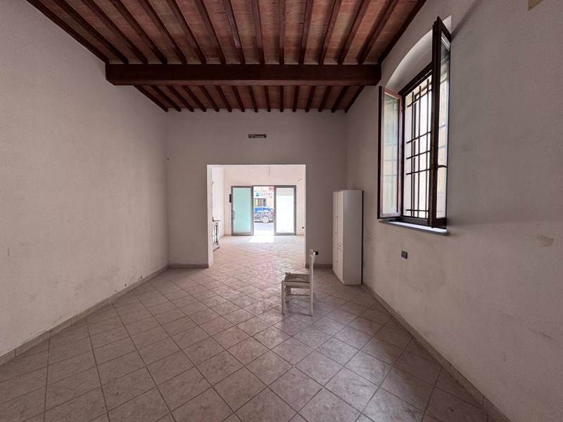 Calcinaia, località Fornacette. Locale commerciale di categoria C/1 - negozi e botteghe - di oltre 100 mq catastali distribuiti interamente sul piano terreno (leggermente rialzato). Internamente è suddiviso in tre grandi stanze, tutte finestrate, oltre al bagno. Ristrutturato internamente nel 2000 in stile rustico con mezzane e travi a vista, esternamente sono stati rifatti di recente sia il tetto che la facciata del fabbricato. Zona centrale con vetrina sulla Tosco Romagnola e quindi in posizione molto visibile. No spese condominiali. Subito disponibile. POSSIBILITÀ anche DI CAMBIO DESTINAZIONE USO A CIVILE ABITAZIONE (con progetto da presentare e far approvare ovviamente in comune). Si allega assieme alle foto una delle soluzioni realizzabili.