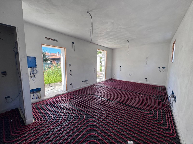 Calcinaia, a due passi dal centro. DIRETTAMENTE DAL COSTRUTTORE proponiamo terratetto d'angolo in classe A su due livelli. Accesso pedonale tramite cancellino privato, pergolato e giardino. Internamente è così composto: al piano terra troviamo la zona giorno open space con cucina a vista, il primo bagno con doccia e finestra, il ripostiglio con attacco per lavatrice; al primo piano invece si sviluppa la zona notte interamente rifinita con travi a vista ed abbiamo tre camere da letto di cui una matrimoniale con doppia finestra, una media, una singola ed il secondo bagno, anche questo con doccia e finestra. Predisposizioni per addolcitore e impianto di climatizzazione. Pavimento radiante, pannelli fotovoltaici, pompa di calore, muri in poroton, infissi in PVC. Casa green "gas free", che utilizza esclusivamente fonti di energia rinnovabile per il riscaldamento, l'acqua calda e la cottura senza ricorrere a gas naturale o altri combustibili fossili. Da rifinire e personalizzare. Consegna in 3/4 mesi. (IDENTIFICATO COME "B1" NELLE PLANIMETRIE ALLEGATE)