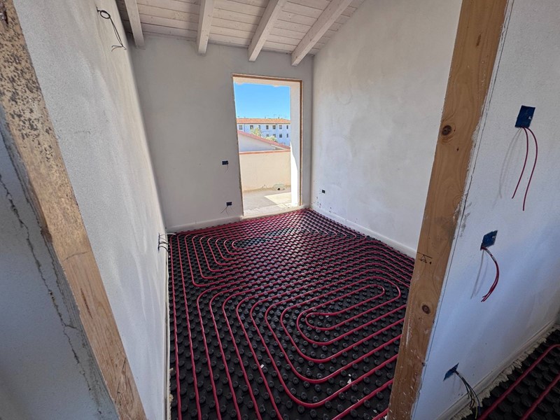 Calcinaia, a due passi dal centro. DIRETTAMENTE DAL COSTRUTTORE proponiamo terratetto in classe A su due livelli. Accesso sia pedonale che carrabile con posto auto privato all'interno della proprietà, pergolato, portico e giardino. Internamente è così composto: al piano terra troviamo l'ampia zona giorno (circa 40 mq) open space con cucina a vista, il primo bagno con doccia e finestra, il ripostiglio/lavanderia finestrato con attacco per lavatrice; al primo piano invece si sviluppa la zona notte interamente rifinita con travi a vista ed abbiamo tre camere da letto di cui due con terrazzo e nel dettaglio una matrimoniale, una media, una singola ed il secondo bagno, anche questo con doccia e finestra. Predisposizioni per addolcitore e impianto di climatizzazione. Pavimento radiante, pannelli fotovoltaici, pompa di calore, muri in poroton, infissi in PVC. Casa green "gas free", che utilizza esclusivamente fonti di energia rinnovabile per il riscaldamento, l'acqua calda e la cottura senza ricorrere a gas naturale o altri combustibili fossili. Da rifinire e personalizzare. Consegna in 3/4 mesi. (IDENTIFICATO COME "B2" NELLE PLANIMETRIE ALLEGATE)