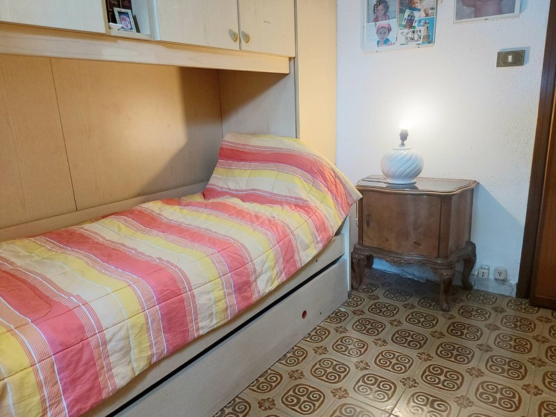 Le due camere da letto offrono spazio per un letto matrimoniale e due letti singoli, oltre a un armadio e altri arredi. La pavimentazione è omogenea con quella della sala.