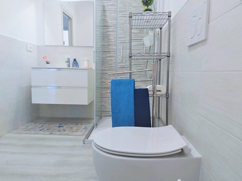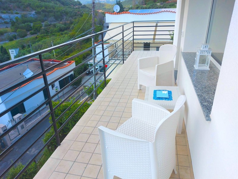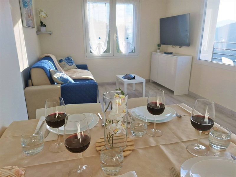 Soggiorno con angolo cottura, (induzione, lavastoviglie, macchinetta espresso) 2 camere matrimoniali, un cameretta, ampio bagno finestrato con doccia da cm 120 x 80 e lavatrice. Una terrazza con vista aperta e scorcio mare, vi aspetta per i Vostri aperitivi a lume di candela. Aria condizionata, wifi e tv in ogni stanza, un posto auto privato a circa 50 mt dalla casa.
