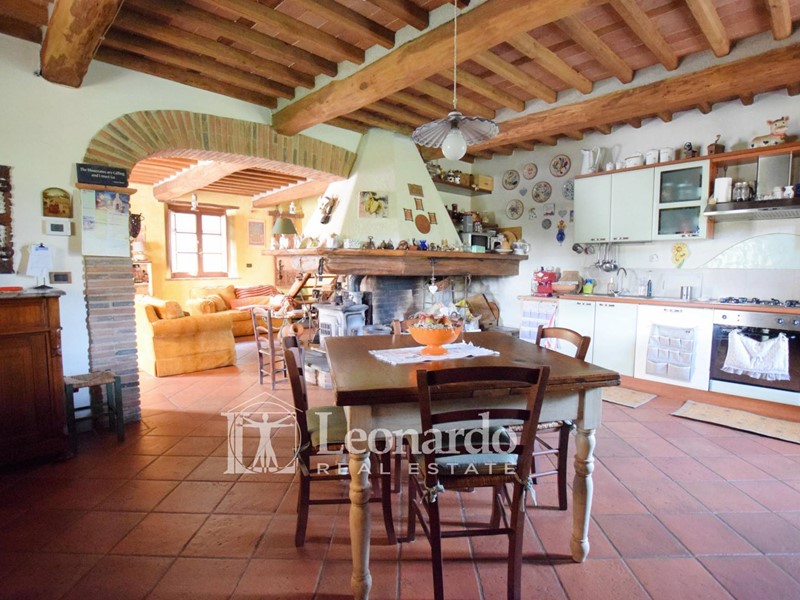 L'abitazione principale, ristrutturata a regola d'arte, si sviluppa su due livelli: al pian terreno il portico conduce all'ingresso dove una grande sala collegata alla spaziosa cucina con camino che serve entrambi gli ambienti, dona una piacevole accoglienza.