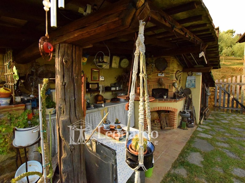 L'ingresso alla proprietà ci apre la vista sulle altre colline in un terreno di due ettari dalle poliedriche risorse dove aree dedicate a frutteto, uliveto, orto, giardino, forno a legna, area aperitivo e anfiteatro naturale circondano le due costruzioni in pietra e la piscina.