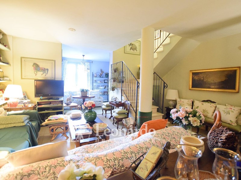 Dalla sala le scale a vista conducono al reparto notte costituito da una camera matrimoniale con terrazzo abitabile di circa 20 mq dal quale si accede direttamente in giardino, una seconda camera doppia, un bagno con doccia e una terza cameretta con bagno privato con doccia.