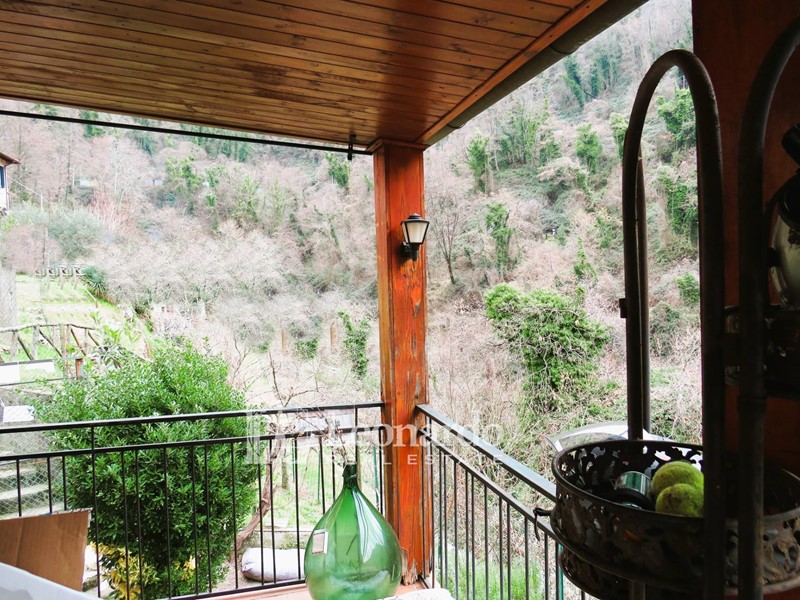 L'ingresso si affaccia direttamente sulla terrazza coperta e ampiamente abitabile, affacciata sulla natura dirompente tipica di questo borgo ed ideale per pranzi e cene all'aperto; si accede direttamente nella zona giorno dotata di camino e stufa e con cucina a vista, allo stesso piano rialzato troviamo un disimpegno e il bagno con vasca.
