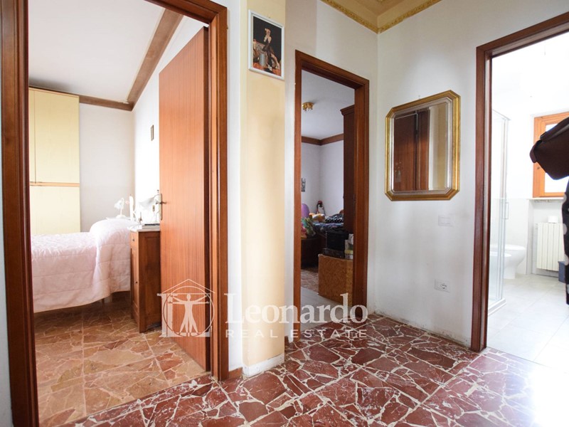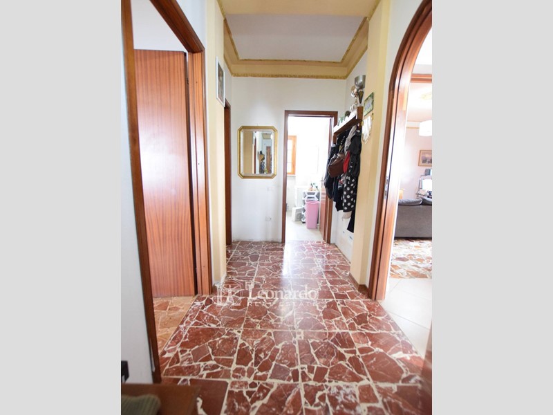Il corridoio disimpegno si snoda fra le due camere matrimoniali, il bagno finestrato e la cucina abitabile accanto al soggiorno. Si può facilmente ricavare una terza camera.
