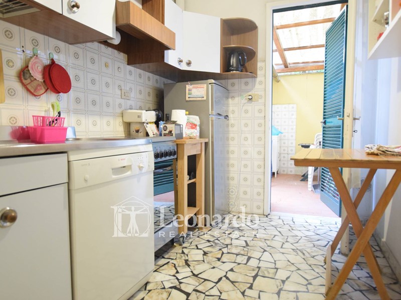 Al piano terreno , l'ingresso si apre subito sul soggiorno, proseguendo in perfetto stile Viareggino arriviamo al tinello e all'angolo cottura dai quali si può comodamente accedere alla corte interna molto utile sia come zona lavanderia, sia per posizionare un tavolino e godersi momenti conviviali all'aperto in totale privacy. A corredo della corte, un bagno di servizio con doccia e lavanderia.