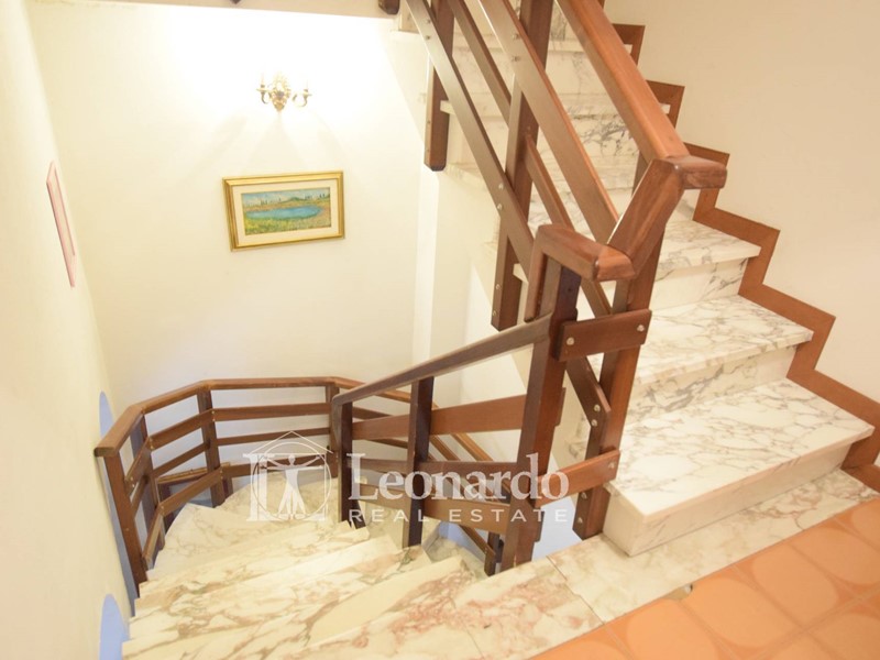 Dalla sala, tramite una bella scala aperta in marmo saliamo al primo piano alla zona notte, dove un ampio corridoio collega le due camere matrimoniali, una delle quali corredata da balcone e il bagno di servizio finestrato con vasca. Al piano è stato appena installato un nuovo impianto di aria condizionata.