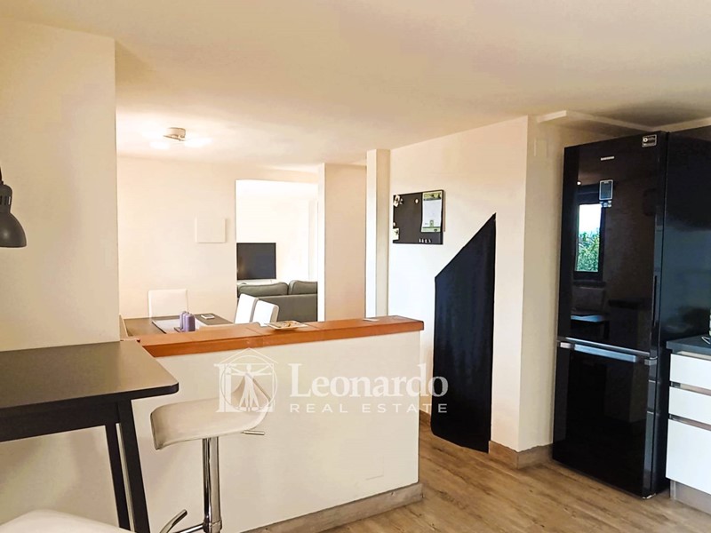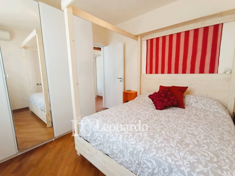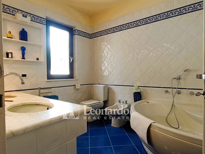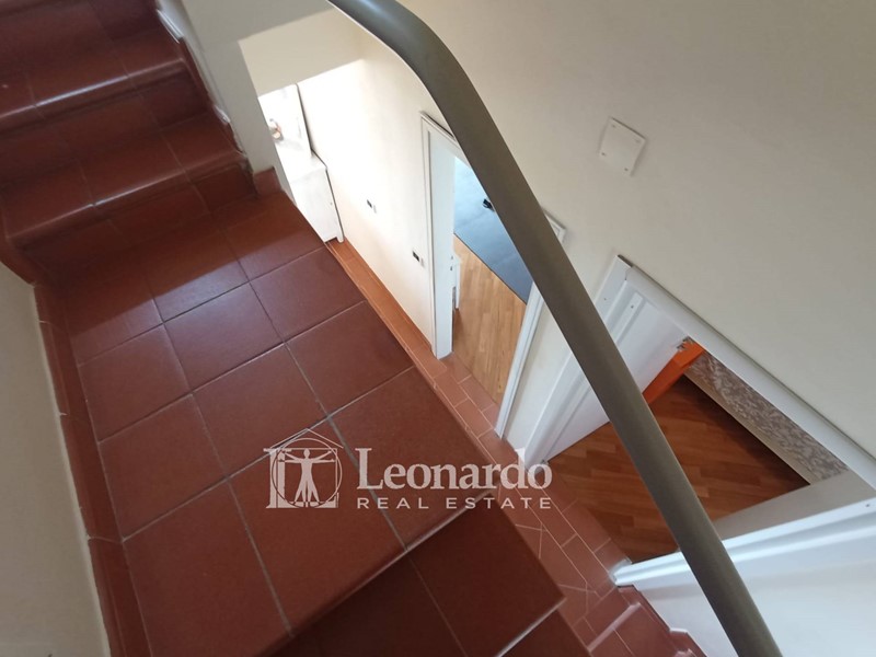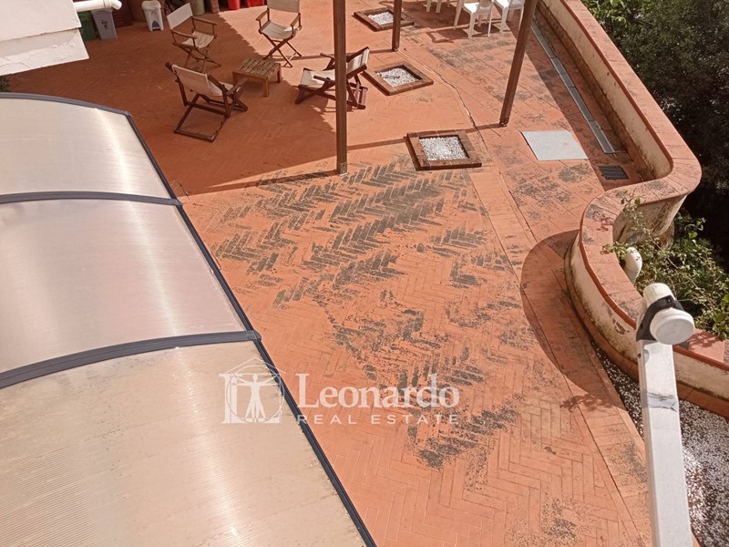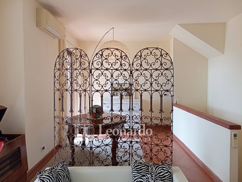 L'ingresso principale si apre su un ampio disimpegno destinabile anche a cucina a vista che accede al soggiorno luminoso dotato di balcone con vista sul mare. Allo stesso pian terreno troviamo due camere matrimoniali, una con balcone e vista mare. Saliamo al piano superiore per trovare una terza camera mansardata e ripostigli sottotetto.