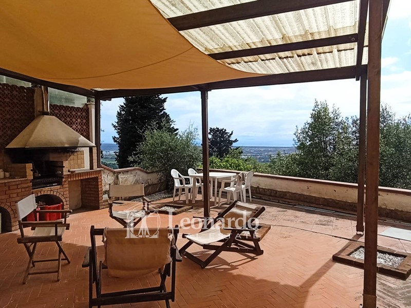Il piano inferiore, offre la taverna parzialmente fuori terra con un grande ambiente riservato alla cucina abitabile e al tinello che si apre sulla sala con camino; anche da qui si ammira il tipico paesaggio sul mare e sul lago. Da questi ambienti si esce nell'area esterna anch'essa con vista, dove un'area pavimentata a terrazza e allestita, offre uno spazio decisamente gradevole per le cene estive ed i barbecue in compagnia o semplicemente per ammirare i suggestivi tramonti della Versilia
