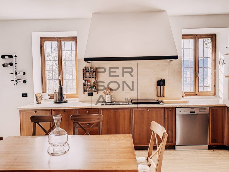 Al 1. PIANO INGRESSO, SOGGIORNO, CUCINA, TERRAZZO CON VERANDA vista lago.