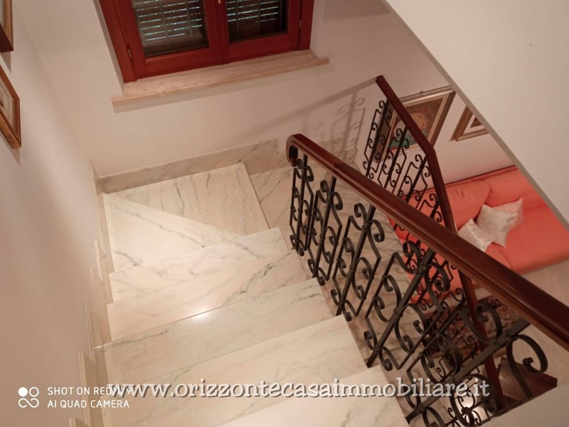 Ottime le condizioni interne con finiture di pregio, pavimentazione in marmo bianco per la zona giorno, parquet per la zona notte, monocottura per il rustico e la cantina, portoncino blindato, infissi in legno con doppi vetri corredati di persiane in legno, inferriate esterne su tutti gli infissi, impianto di allarme, videocitofono e sistema satellitare privato, termostati indipendenti per ogni piano;